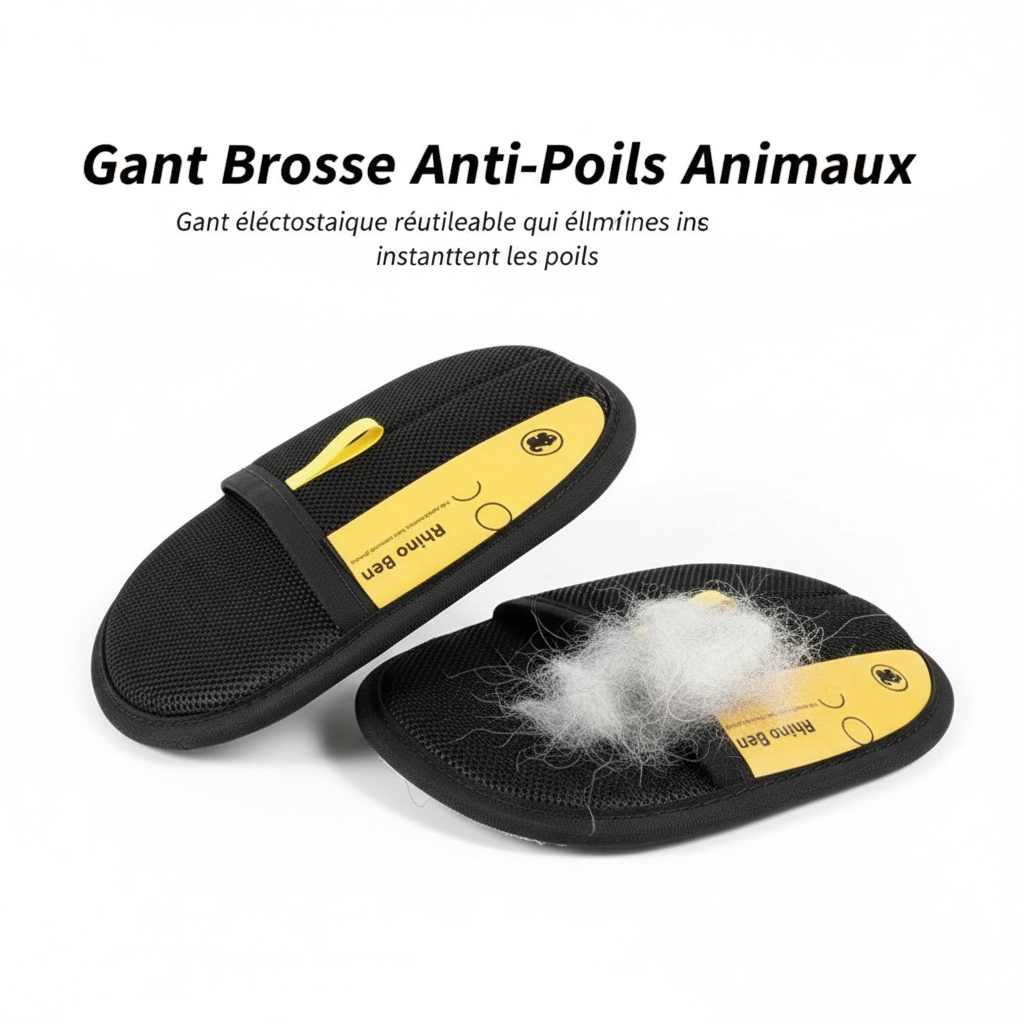 Éliminez les poils d'animaux en quelques secondes avec notre gant électrostatique réutilisable. Efficace sur toutes surfaces, écologique.